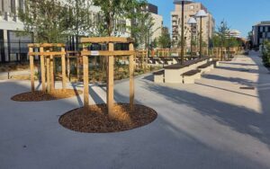 Le principe des tranchées de Stockholm est alors de favoriser le développement racinaire des arbres tout en permettant l’infiltration des eaux pluviales et la réalisation d’une structure de chaussée.